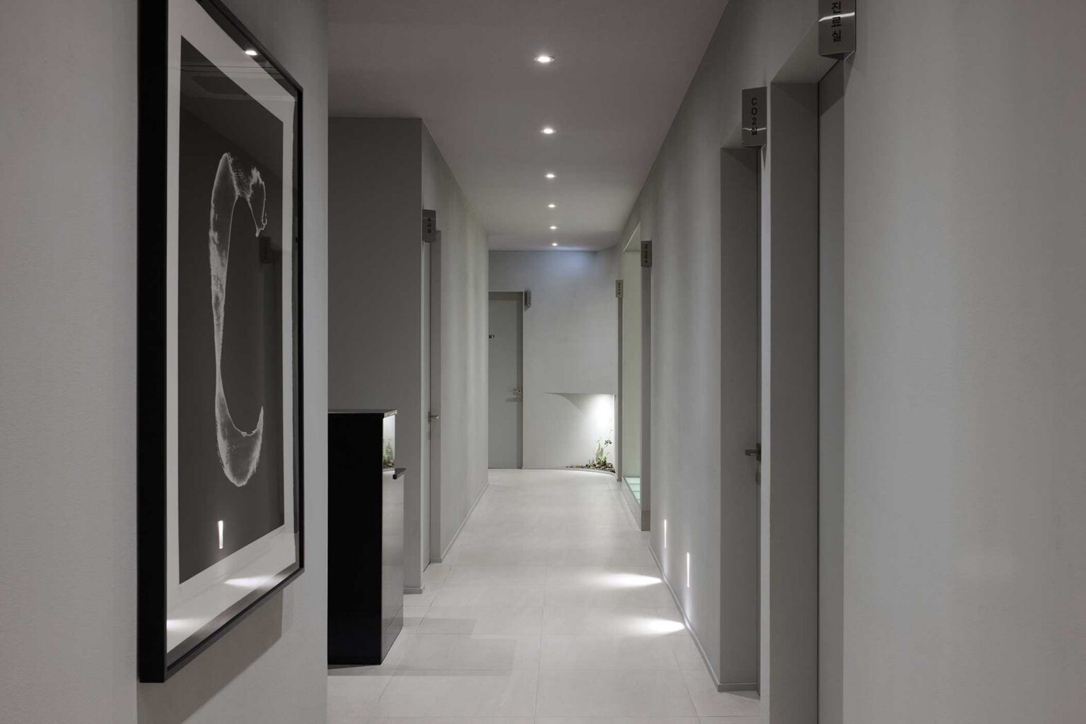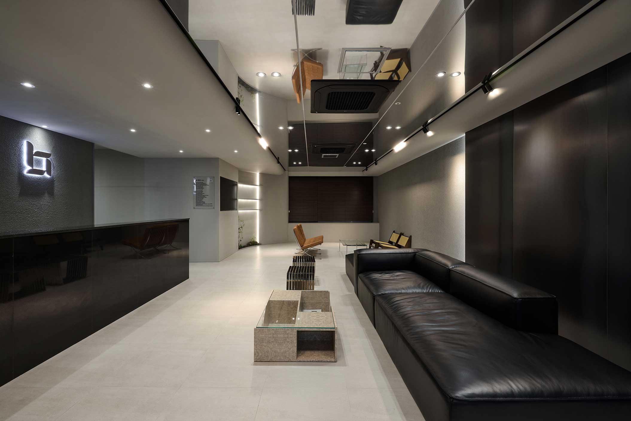 블랙과 라이트 그레이의 명도 대비는 공간 전반에